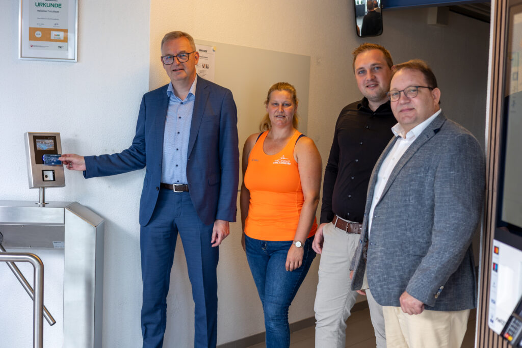 „Als Samtgemeinde legen wir großen Wert darauf, unser Hallenbad technisch auf dem neuesten Stand zu halten“, betont Ansgar Duling, Samtgemeindebürgermeister in Emlichheim. „Mit dem neuen Kassenautomaten bieten wir unseren Badegästen einen modernen, nutzerfreundlichen Zugang zum Schwimmbad – ganz ohne Wartezeiten.“