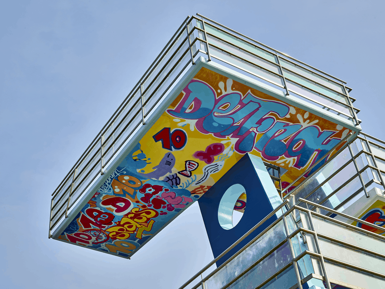 • Speedrutsche (ab 10 Jahre): Länge 23,10 m / Landebahn 4,50 m / Starthöhe 10 m, Gefälle 42 %